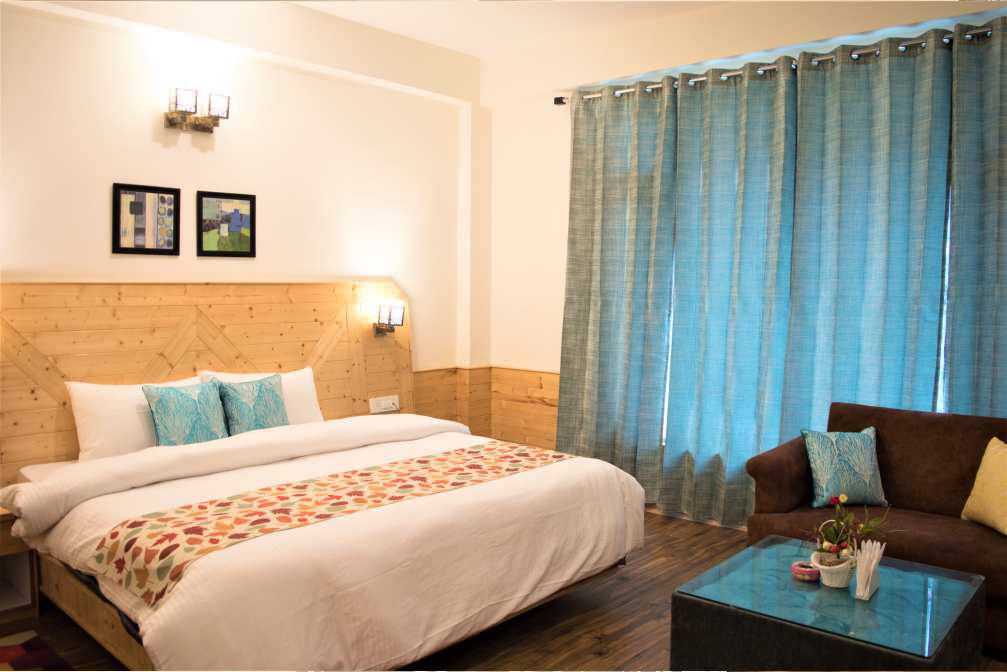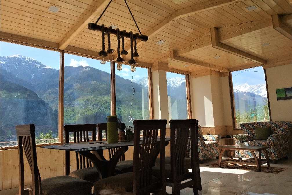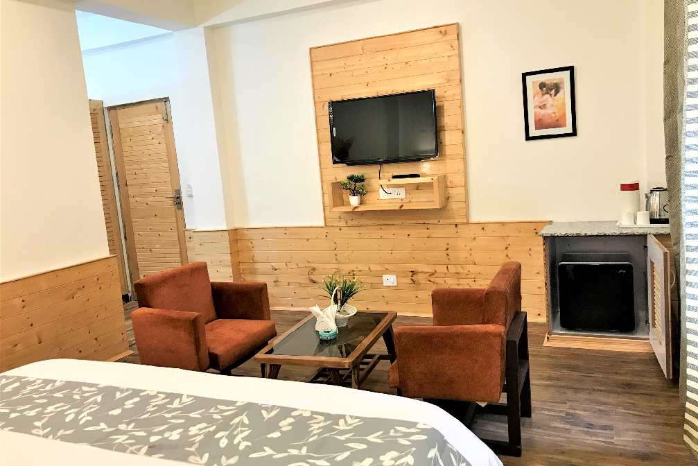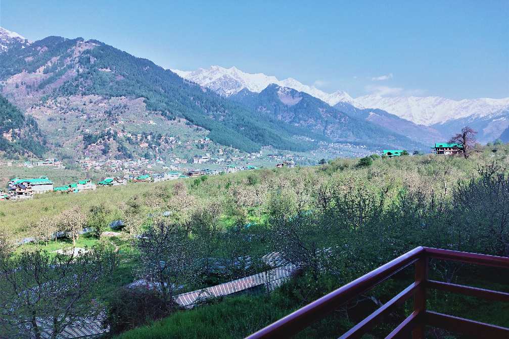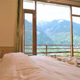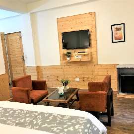Expansive Room with Personal Balcony and Sofa Seating. Stunning View of Mountains & Kullu Manali Valley. 42” Smart Tv’s, 10” Pocket spring mattresses, Tea Coffee Station, Hair Dryers and Shaving/Makeup Mirrors in the washrooms, Fans, Wardrobe, Full length Mirrors.