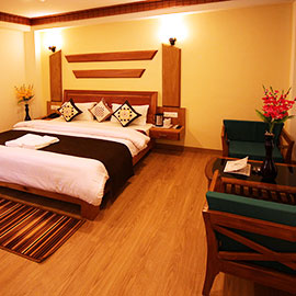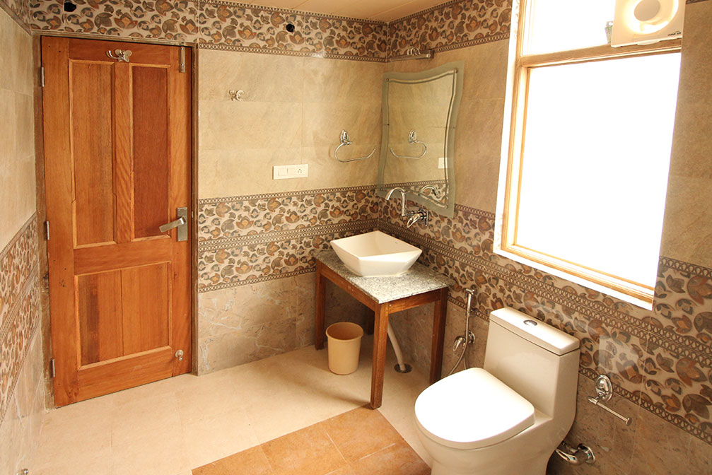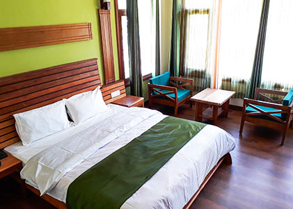 Well laid out, spacious and comfortable rooms. Double bed and sitting area. Basic facilities like Fans, TV, Geysers, Intercom, etc.
