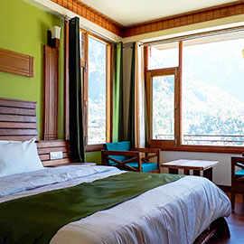 From Eden Woods our guests can enjoy a 360 degree view of entire Manali and all the peaks around it. The snow clad Rohtang, Hamta Peak and Friendship Peak are visible in all their majestic glory from our windows and balconies. Away from the bustle of the town, Eden Woods is a Boutique hotel which provides you with an intimate, quiet and comfortable environment.
